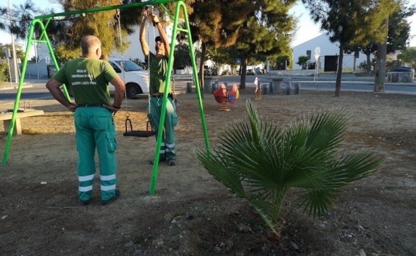 Depois de terem sido plantadas naquele espaço duas palmeiras, foram agora colocadas duas molas para crianças dos 2 aos 8 anos.