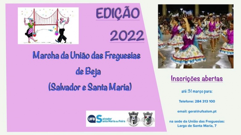 A União de Freguesias de Beja (Salvador e Santa Maria da Feira) tem abertas as inscrições para o marchantes que queiram participar na nossa marcha.