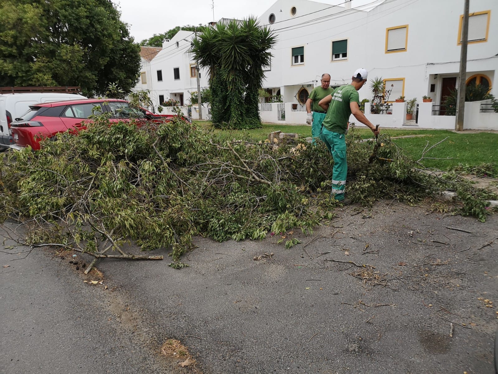 A União das Freguesias efetuou desde logo um trabalho de retirada de muitas destas ramagens dos passeios, assim como alguns cortes preventivos em árvores ou ramagens que apresentavam perigo para viaturas e pessoas. Também foi feita a limpeza das ruas intervencionadas.