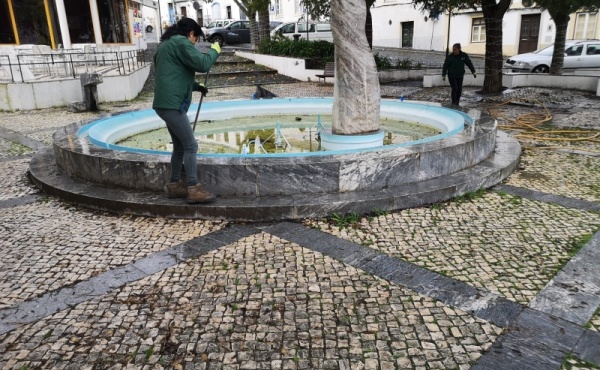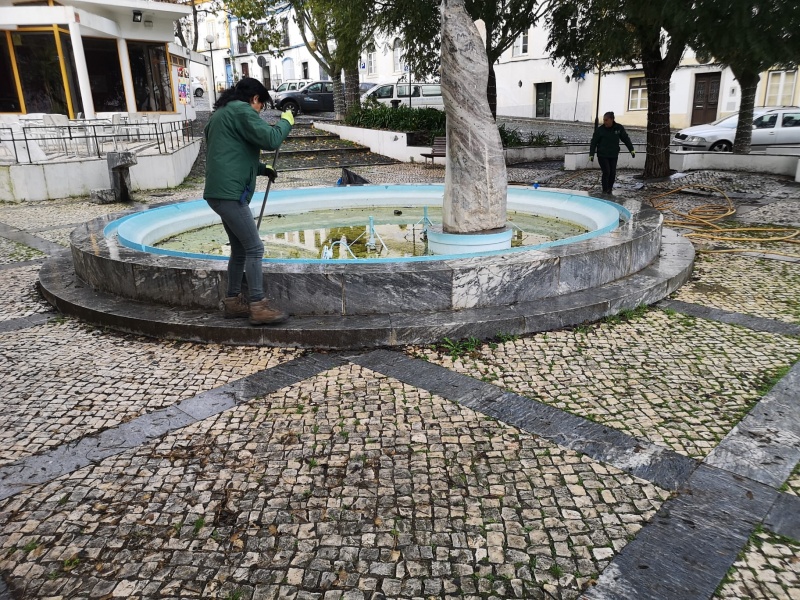 O espaço frontal ao Tribunal Judicial de Beja tem localizado um pequeno lago decorativo já muito desgastado pelo tempo e que carecia de uma manutenção grande que não pode ser realizada pela UF. No entanto, por uma questão de gostarmos de ter este espaço cuidado, efetuamos limpezas regulares do espaço e sucessivas operações de manutenção elétrica no interior do mesmo, para garantir o seu funcionamento.
